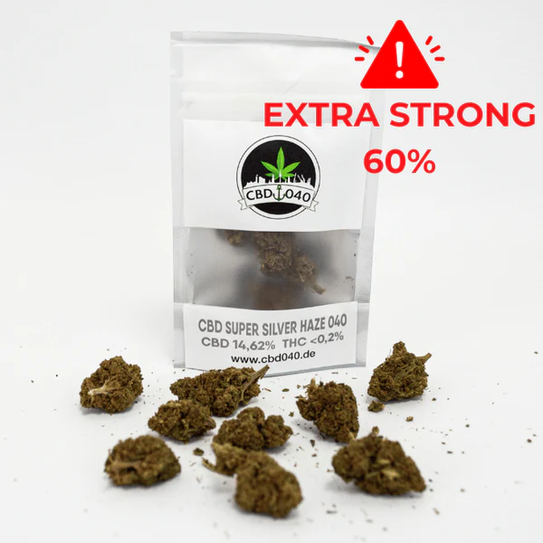 Wenn Sie auf der Suche nach der stärksten und besten Sorte unserer Extra Strong Linie sind, ist die Super Silver Haze Extra Strong (60% CBD) genau das Richtige für Sie. Diese Sorte kombiniert das Beste aus Geschmack, Aroma und Wirkung, um Ihnen ein unvergleichliches Erlebnis zu bieten. Mit ihrer kräftigen, aber dennoch sanften Wirkung ist sie ideal für alle, die den nächsten Schritt in der Welt des legalen Cannabis ohne Rezept machen möchten. Silver Haze Extra Strong 60